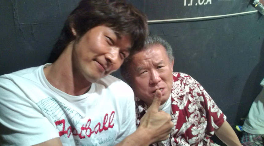 申し訳ねぇ!!! そして25日のファイナルと29日のDrumBe-17に来てくれた方々ありがとうございましたッッ(・∀・) ファイナルは1ヶ月という初めての長いツアーていうのもありかなり楽しくやれました!!まだまだ課題は山積みやけど頑張っていきやす( ´艸`)ほんとありがと!! 29日は長崎からも多くの人が足を運んでくれて長崎のバンドはほんと愛されてるなと思うたし,実に濃いメンツと楽しいライブで最高の1日になったんやないかと思います☆ 福岡の人達にも長崎のバンドを見てもらうことができたしよかったよかったヽ(´ー`) あ,ちなみに帰ってきてまた太ったという声がちらほら聞こえましてダイエットというものをまた再開しようと… 目指せ60㎏前半!!!! まずは恒例の水ダイエットと腹筋背筋やな… 写メはY村さんと会長のツーショット!!!!楽しい夜やった★ |