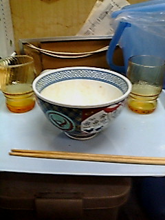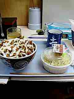 最近少し痩せました!!!! 最近いつもの豚丼に飽きを感じてた頃ある人との話しで て:「生姜焼き定食にマヨネーズつけてみたらうまいように豚丼にマヨネーズつけたらうまいんぢゃなぃっすかね?」 Tさん:「それうまいやろ!!」 そう…今日はその時間がやってきた。 最初にサラダに胡麻ドレを… !!!!!!…ほ~やるやっか。。。出が悪いと思ぅた矢先にその攻撃…おかげでオレのエプロンは胡麻ドレまみれだぜぃ。 さぁお待ちかねの豚丼Withマヨネーズ… なんぢゃこりゃ…!!!!!!マヨネーズかけすぎや!!!! ……いやしかし意外と箸は進んでまぅ。ん~結果としてはマヨネーズは①個で充分やわ=Зみなさんもおいしい食い方あったら教えてやぁ★